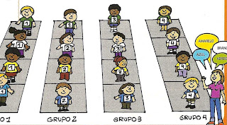 2. Faça placas numeradas para que os alunos prendam nas roupas. Todos os do grupo 1 devem ter placas com o nº1, todos os do grupo 2 devem ter placas com o nº2, assim por diante.